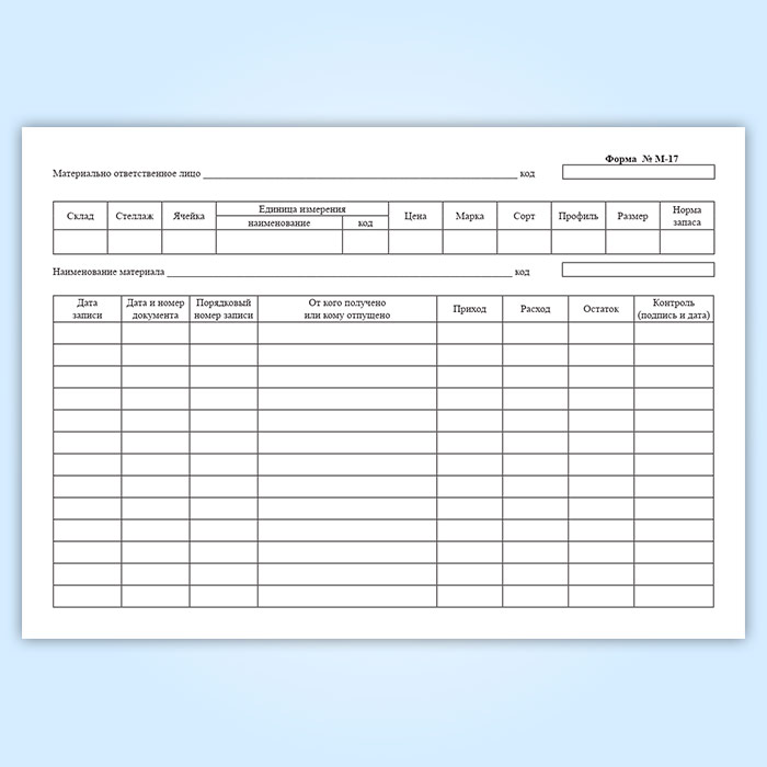 Инвентарный журнал учета материалов (Форма М-17) используют для учета материальных ценностей на складе.