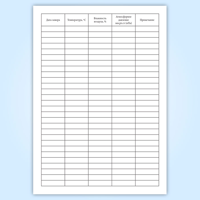 Специальный журнал учета показаний позволяет каждый день контролировать микроклимат, записывать основные данные и впоследствии изучать их.