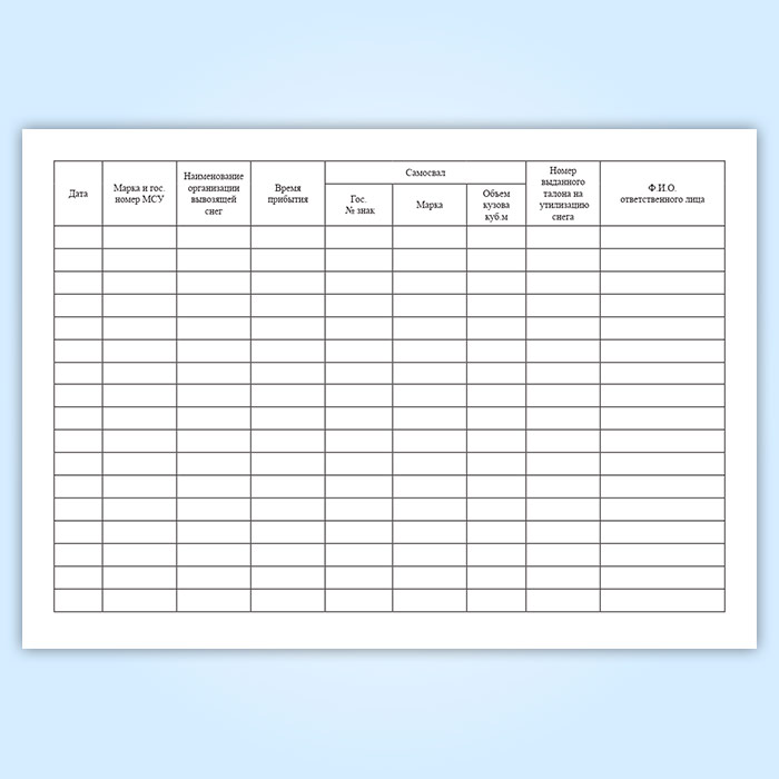 Журнал учета приема снега на мобильном снегоплавильном пункте имеет графы: