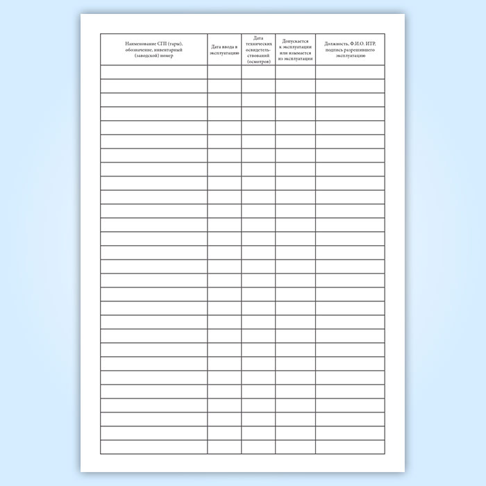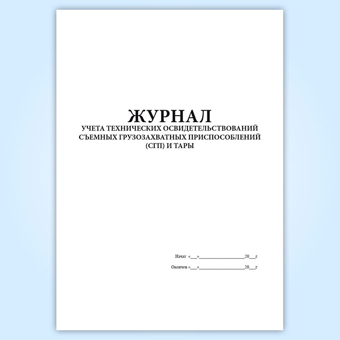 Журнал учета технических освидетельствований съемных грузозахватных приспособлений (СГП) и тары