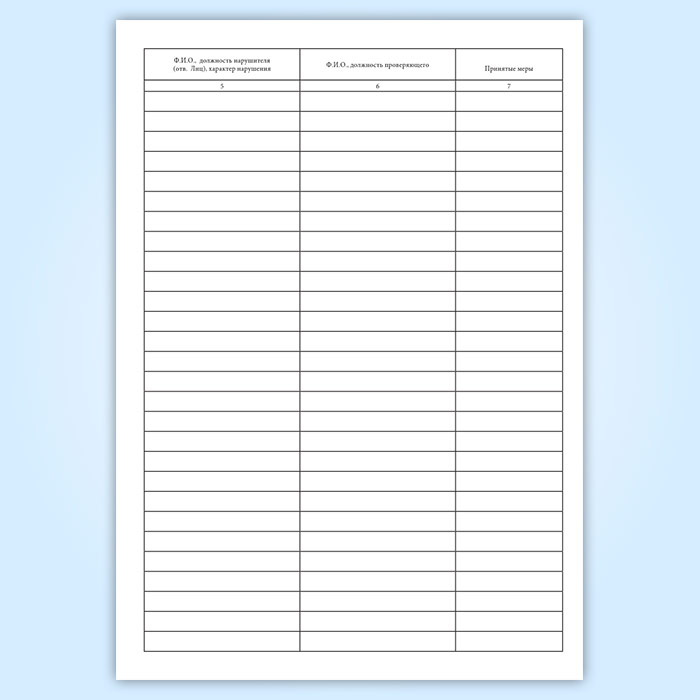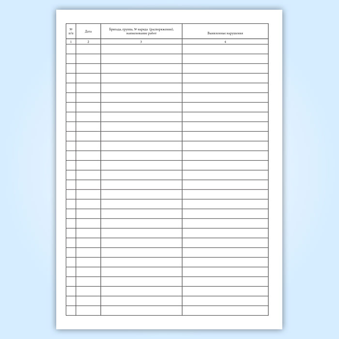 Журнал учета нарушений работающих бригад имеет графы: