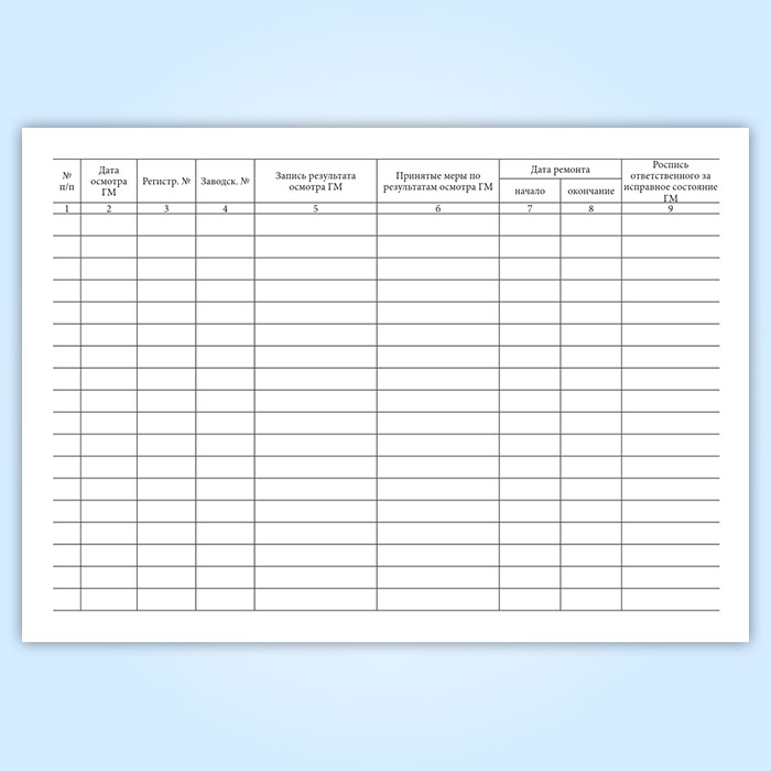 Сотрудник, ответственный за исправное состояние ГМ отмечает в журнале даты осмотра и ремонта в случае обнаружения неисправностей.