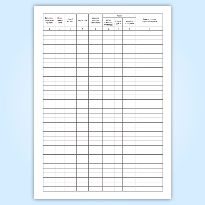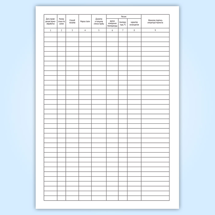 Журнал термообработки сварных соединений (Форма П27.19) имеет графы: