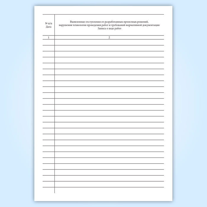 2. Выявленные отступления от разработанных проектных решений, нарушения технологии проведения работ и требований нормативной документации Запись о ходе работ