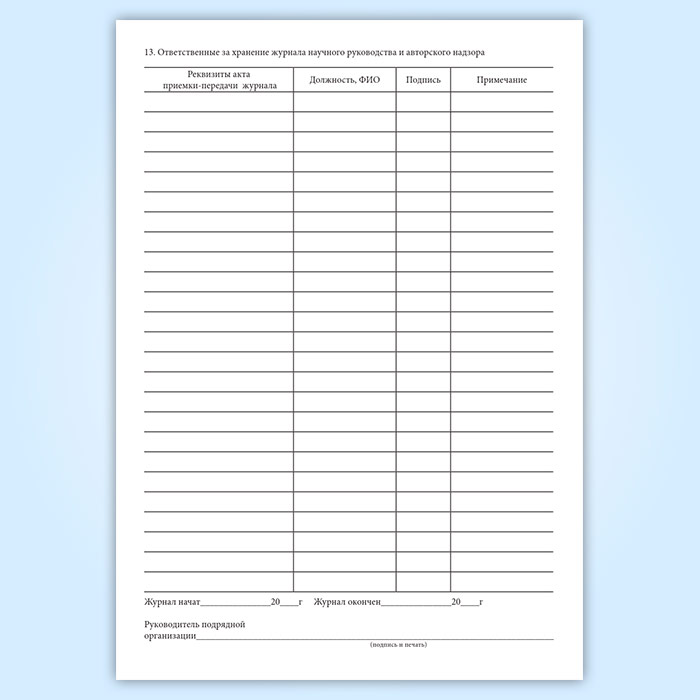 13. Ответственные за хранение журнала научного руководства и авторского надзора