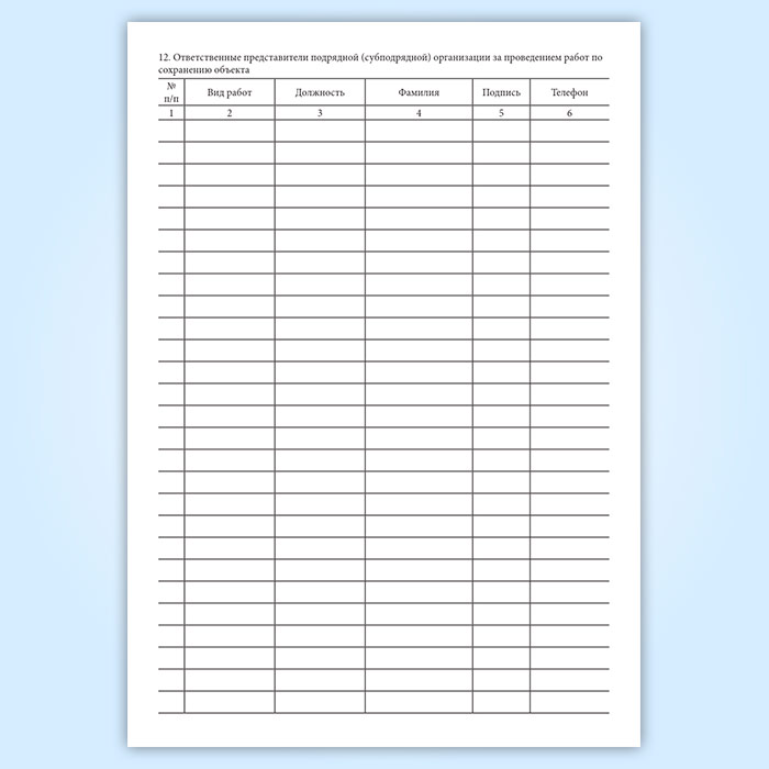 12. Ответственные представители подрядной (субподрядной) организации за проведением работ по сохранению объекта
