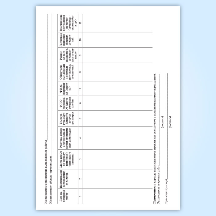 Журнал сварочных работ заполняется при проведении сварочных работ на объекте строительства.