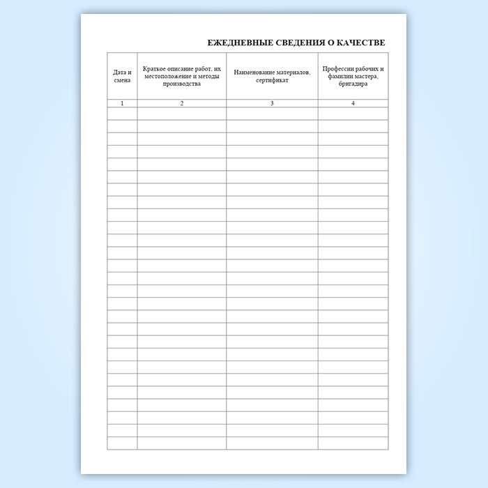 - Ежедневные сведения о качестве и приемке выполненных работ
