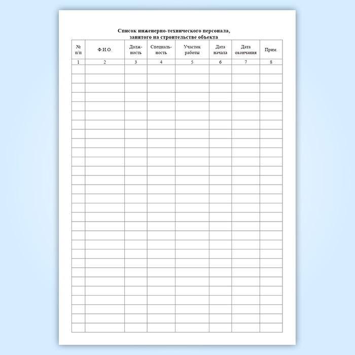 - Список инженерно-технического персонала, занятого на строительстве объекта