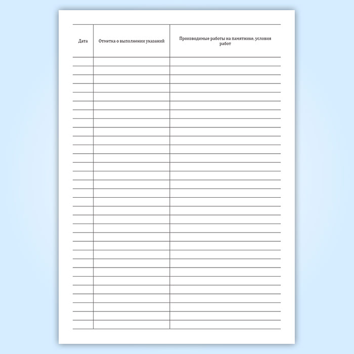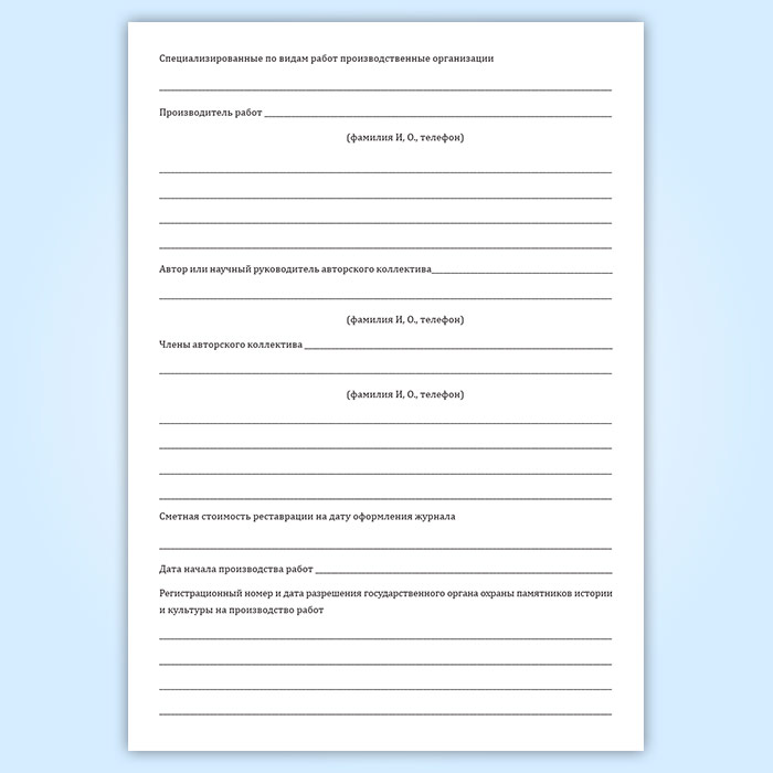 Журнал реставрации, научно-методического руководства и авторского надзора содержит разделы: