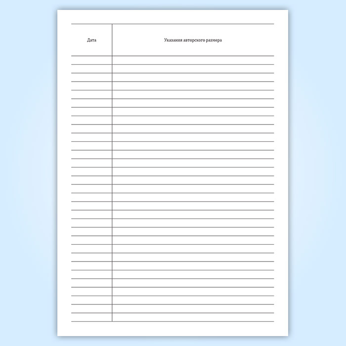 Указания авторского размера