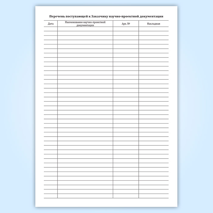 Перечень поступающей к Заказчику научно-проектной документации
