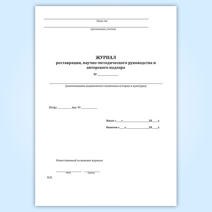 Журнал реставрации, научно-методического руководства и авторского надзора