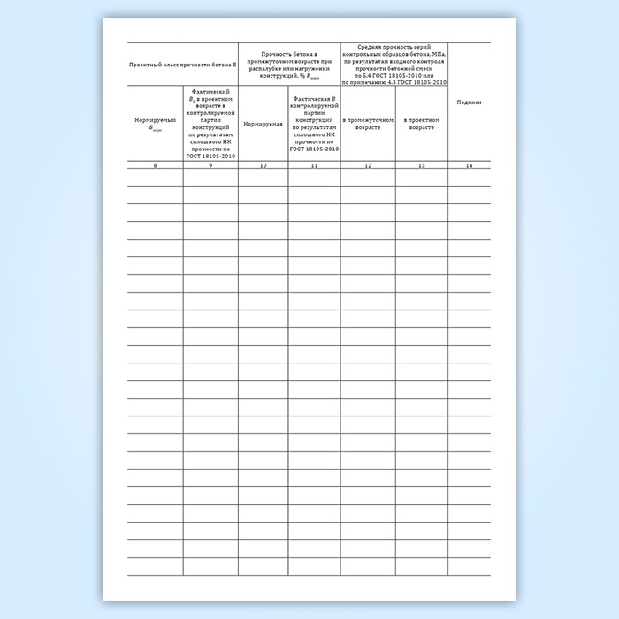 STRONG> Графы журнала бетонных работ: