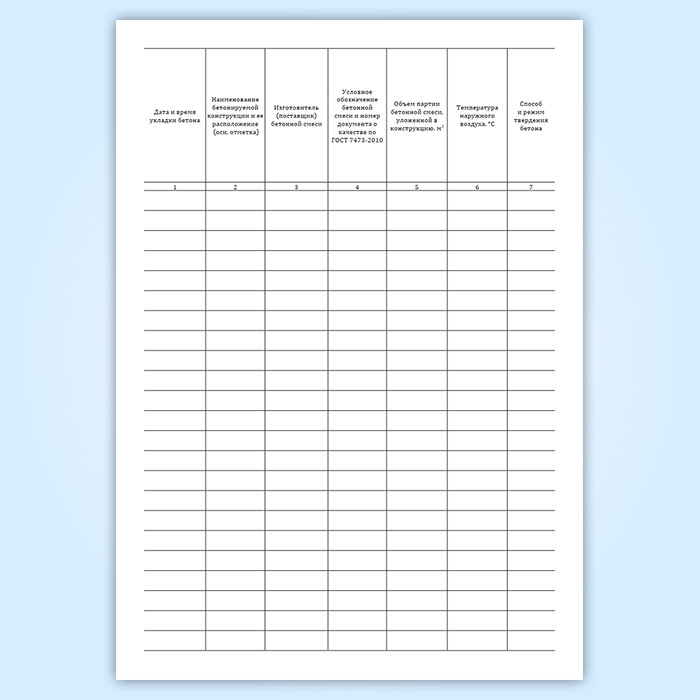 Графы журнала бетонных работ. Форма 12.1 (СП 392.1325800.2018):