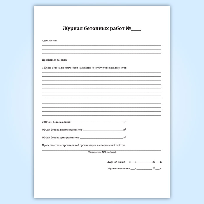 Журнал бетонных работ (форма 12.1, СП 392.1325800.2018)