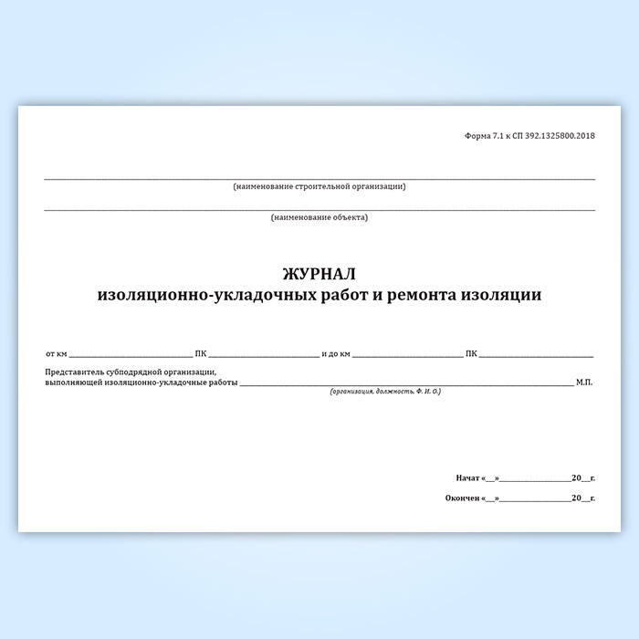Журнал изоляционно-укладочных работ и ремонта изоляции (форма 7.1)