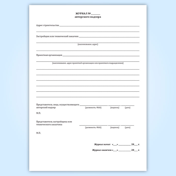 Представитель авторского надзора заносит результаты проверок, замечания и предложения в специальный журнал.
