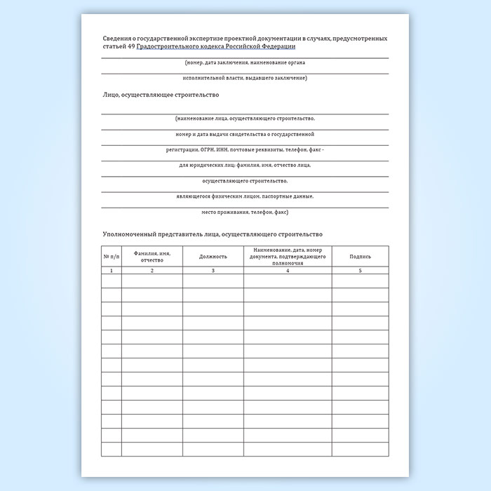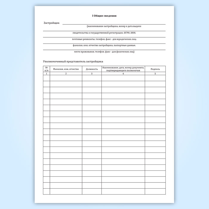 Раздел I «Общие сведения» заполняет уполномоченный представитель застройщика или заказчика.