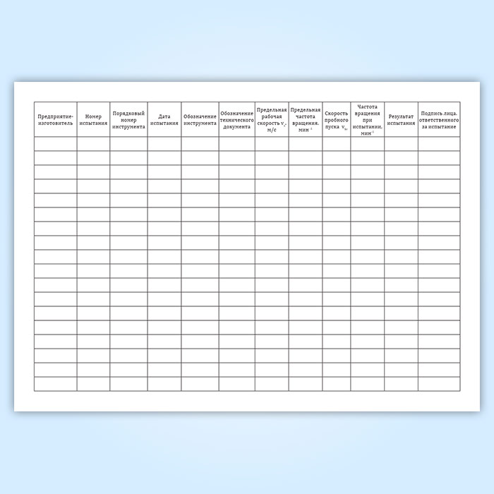 Форма Журнала соответствует Таблице 9 ГОСТа Р 52588-2011 "Инструмент абразивный. Требования безопасности"