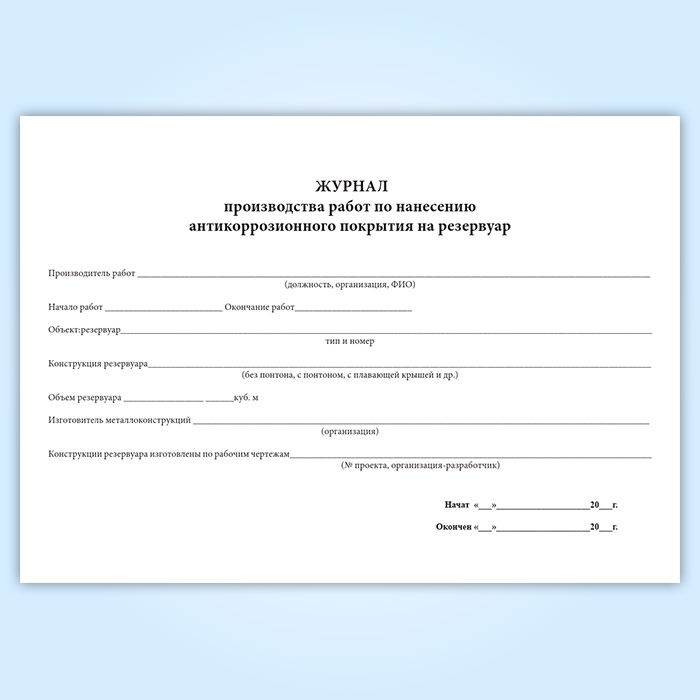 Журнал производства работ по нанесению антикоррозионного покрытия на резервуар