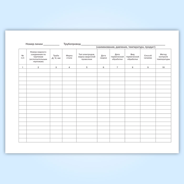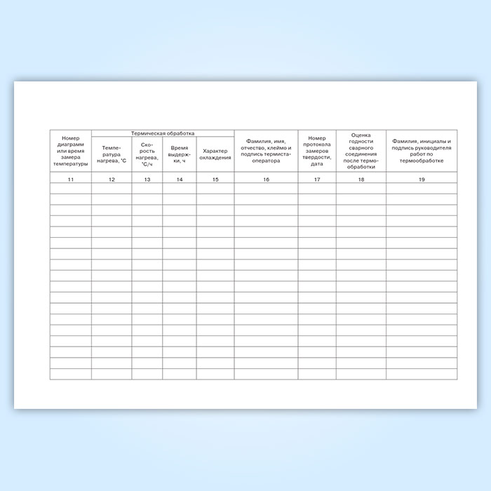 Журнал термической обработки сварных соединений (Форма 8) имеет графы: