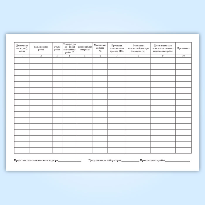 Журнал производства каменных работ в зимний период