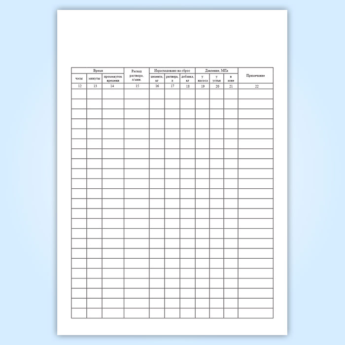 См. также: Журнал инъекции грунтов цементными растворами, Журнал инъекции скважины гидротехнического сооружения (Форма N 2), Журнал инъекции грунтов карбамидными растворами, Журнал инъекции грунтов цементными растворами (СП 361.1325800.2017)