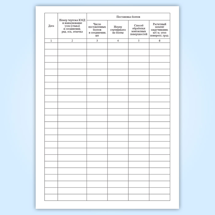 Журнал выполнения монтажных соединений на болтах с контролируемым натяжением