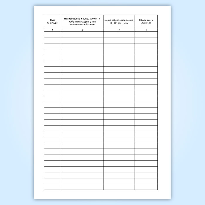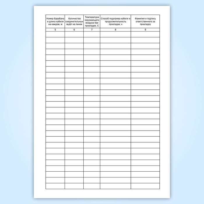 Графы журнала прокладки кабелей: