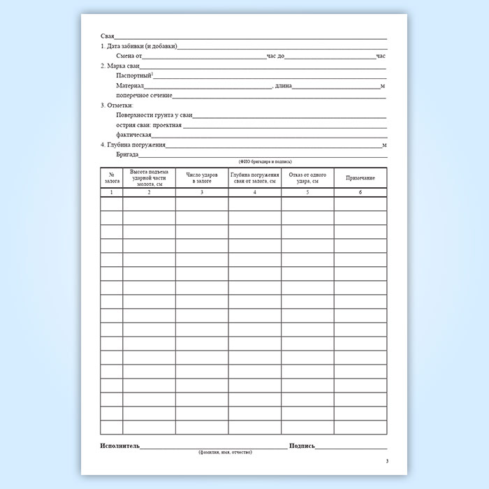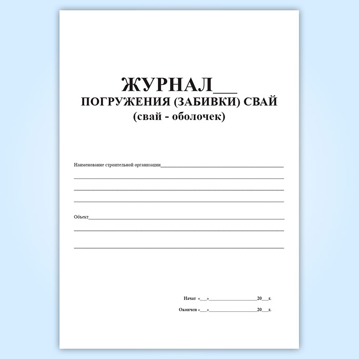 Непосредственно на площадке строительства свайной конструкции надлежит вести специальный журнал погружения свай или свай-оболочек.