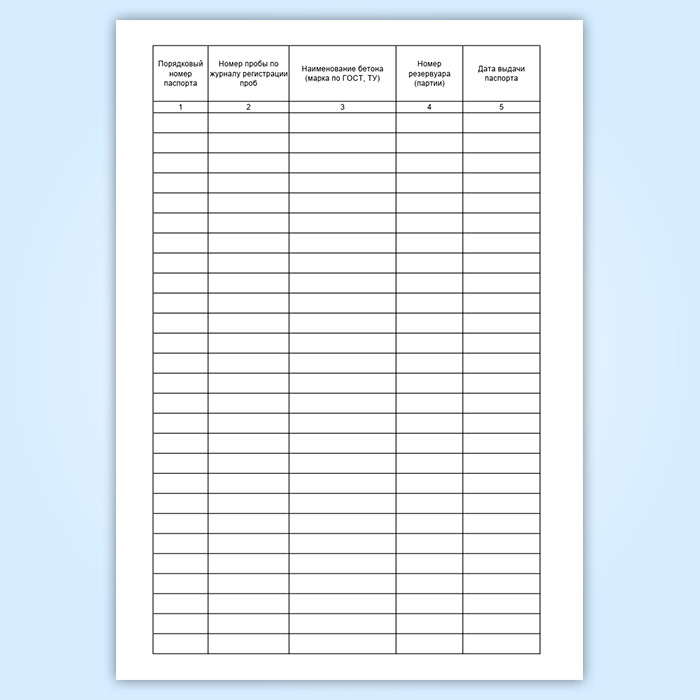 Журнал регистрации паспортов качества (бетоны)
