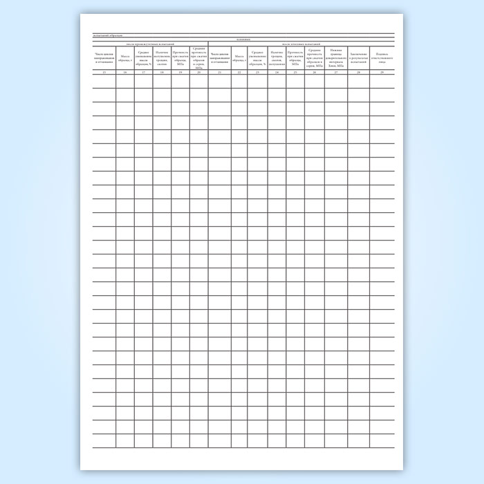 Журнал испытаний бетона на морозостойкость