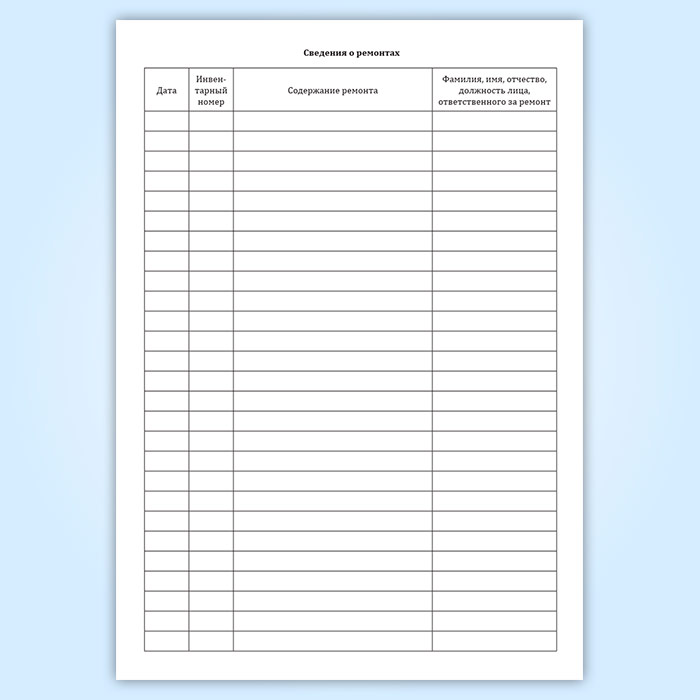 Сведения о ремонтах. Графы: