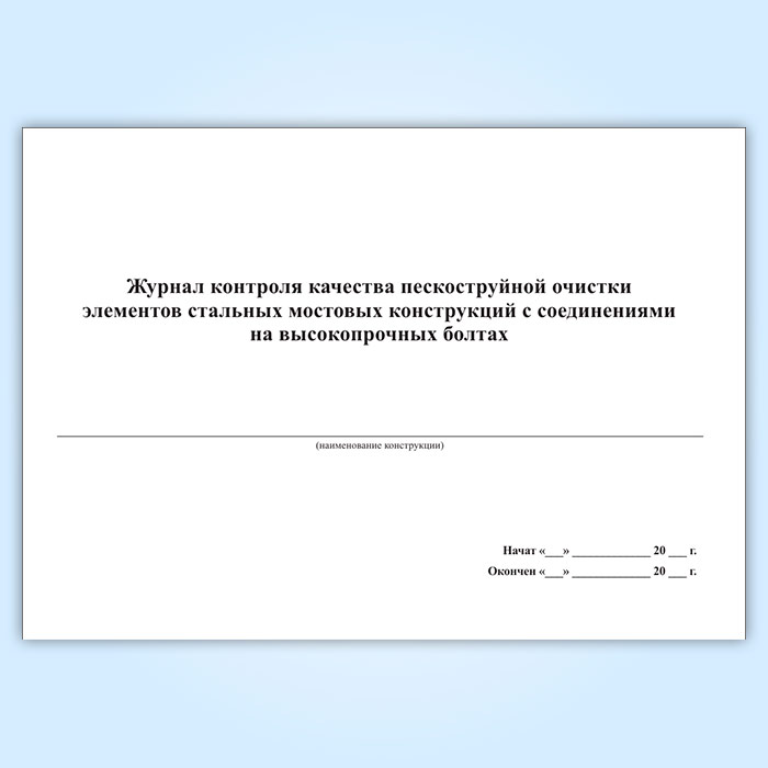 Журнал контроля качества пескоструйной очистки элементов стальных мостовых конструкций с соединениями на высокопрочных болтах