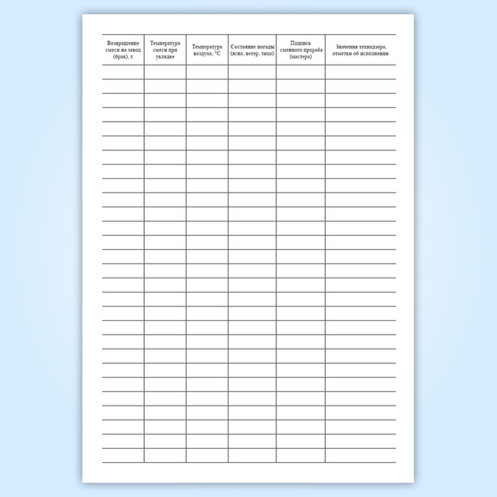 Журнал укладки и уплотнения горячих асфальтобетонных смесей