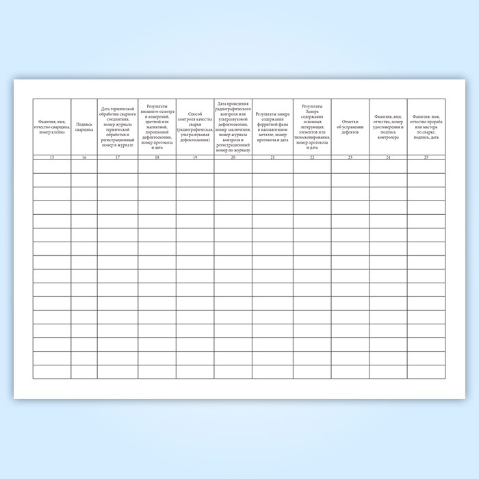 Журнал сварочных работ имеет графы: