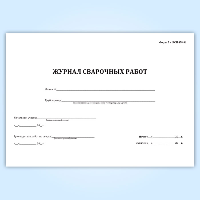 Журнал сварочных работ (ВСН 478-86)