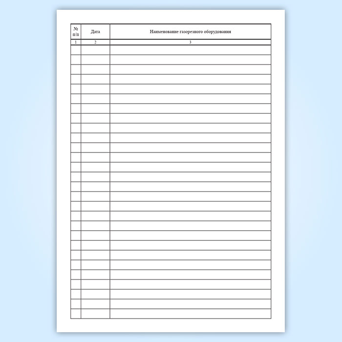Журнал регистрации и осмотра газорезного оборудования имеет графы: