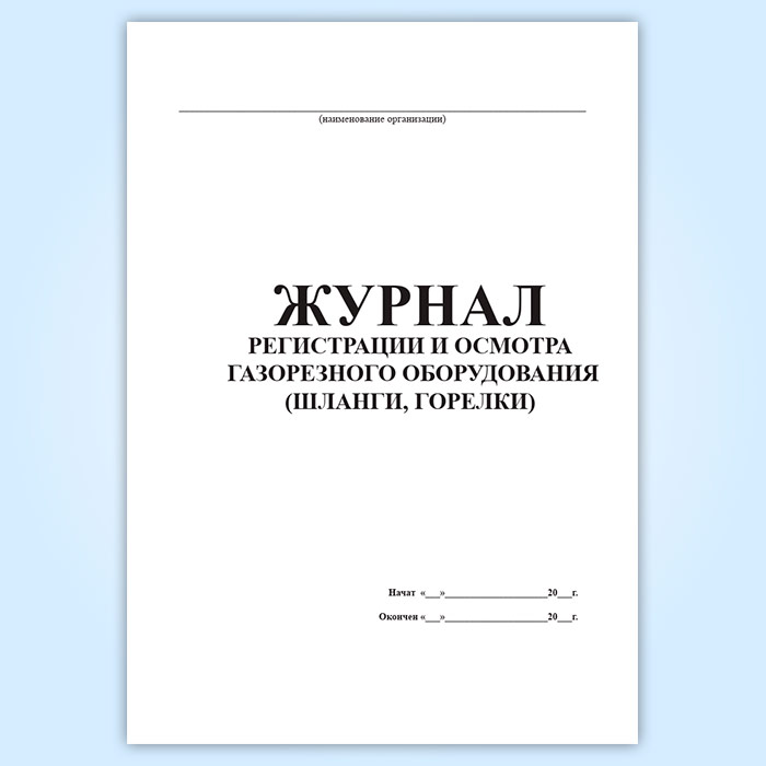 Журнал регистрации и осмотра газорезного оборудования (шланги, горелки)