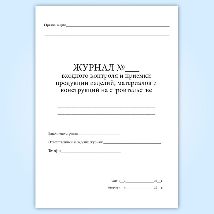 Журнал входного контроля и приемки продукции, изделий, материалов и конструкций на строительстве