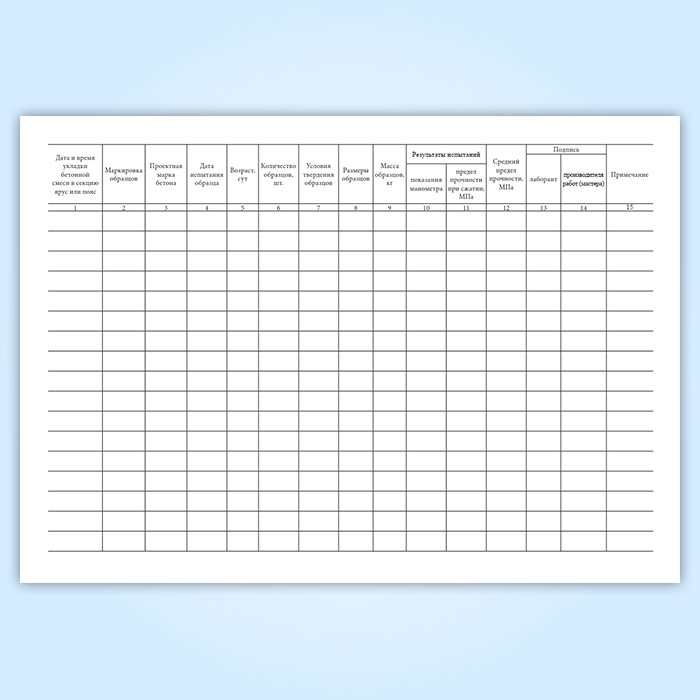 См. также: Журнал испытания контрольных образцов бетона (Форма Ф-26)