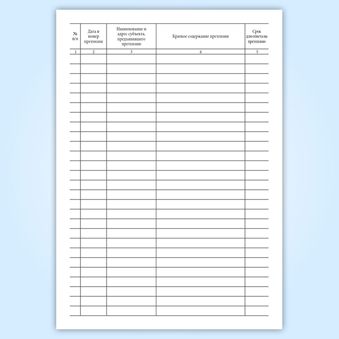 Журнал учета претензий имеет графы: