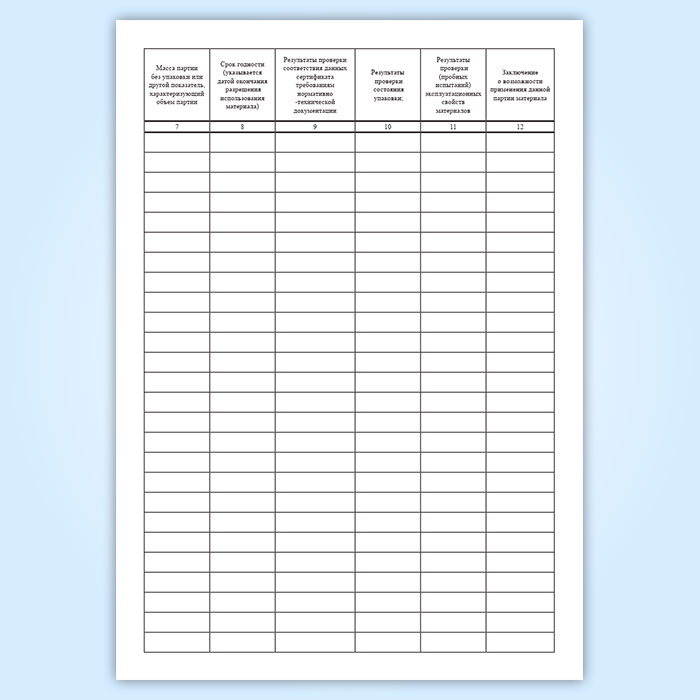 Каждая запись в графе "Заключение" подписывается лицом (лицами), выполнявшими контроль материалов.