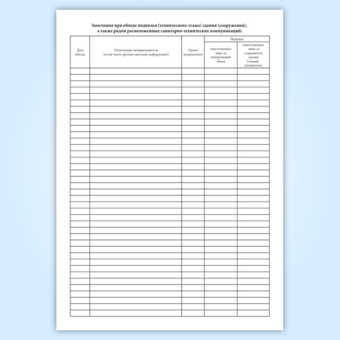 Замечания при обходе подполья (технического этажа) здания (сооружения), а также рядом расположенных санитарно-технических коммуникаций:
