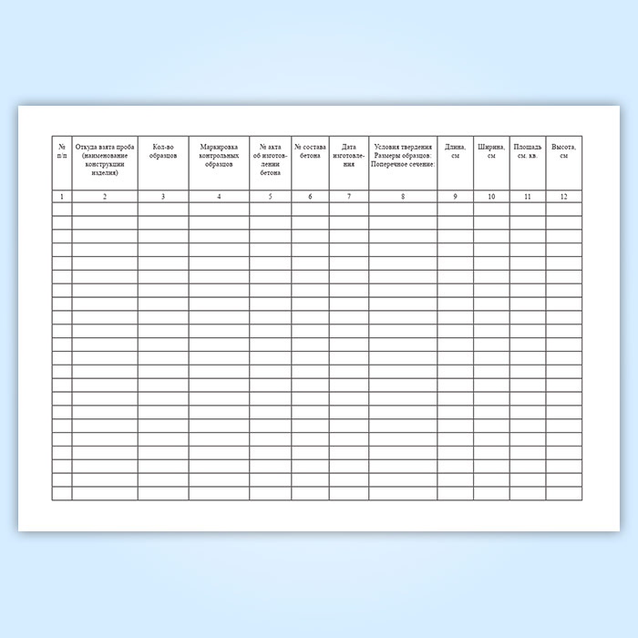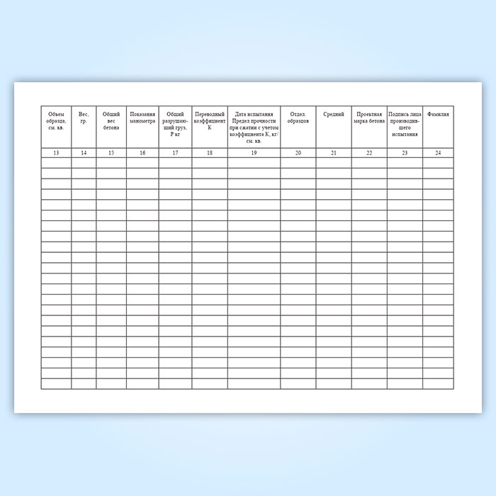 Журнал испытаний (контроля прочности) бетона