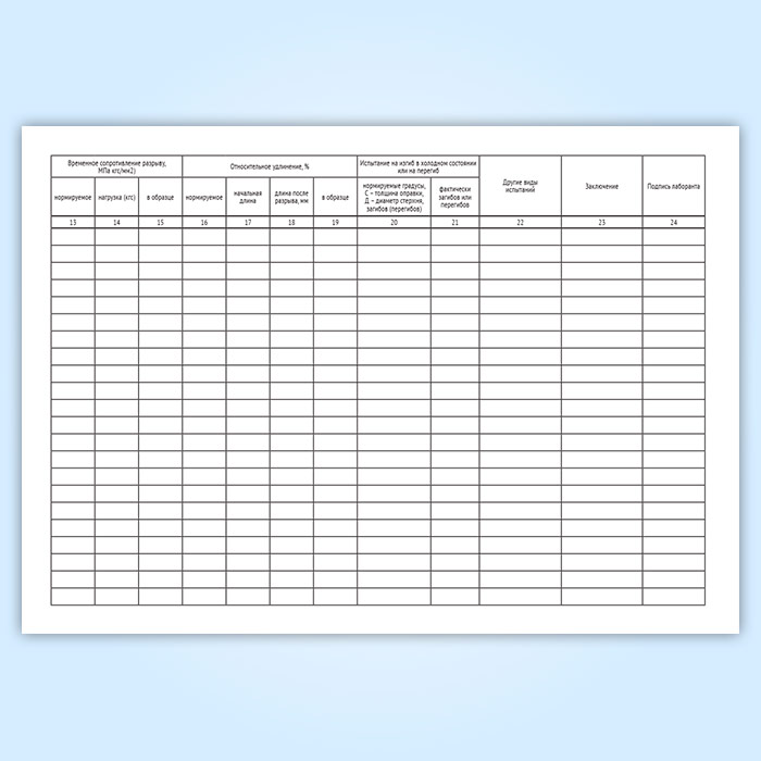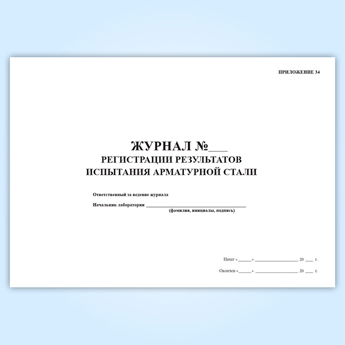 Форма журнала регистрации результатов испытания арматурной стали соответствует Приложению 40 к Пособию Контроль качества на строительстве мостов.