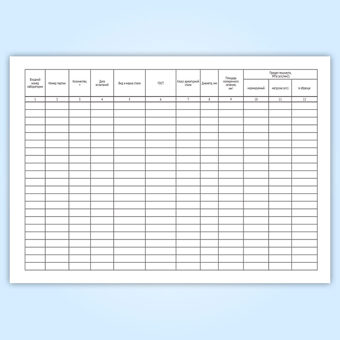 Журнал регистрации результатов испытания арматурной стали имеет графы: