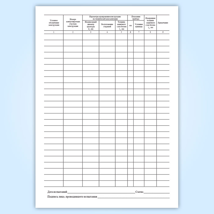Журнал измерения толщины защитного слоя бетона железобетонных конструкций
