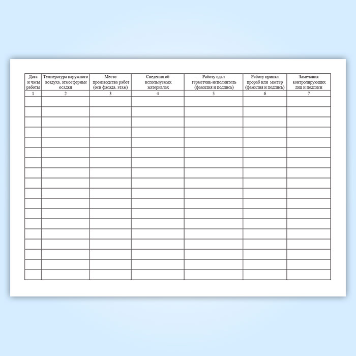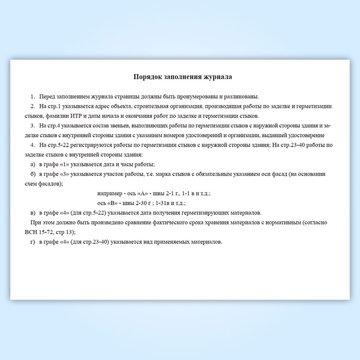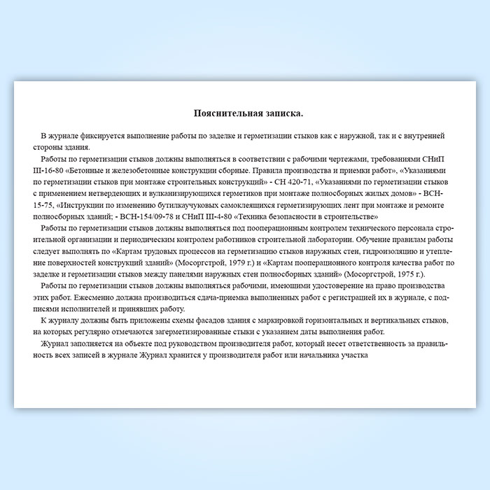 Журнал контроля качества производства работ по заделке и герметизации стыков полносборных зданий содержит разделы: